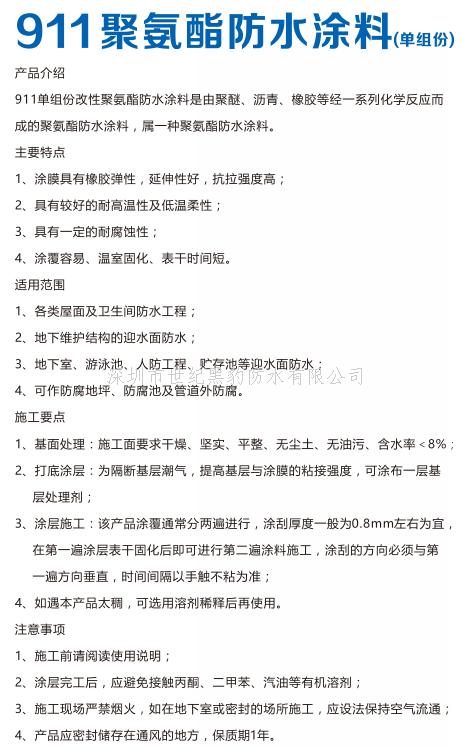 粤豹单组份911聚氨酯防水涂料